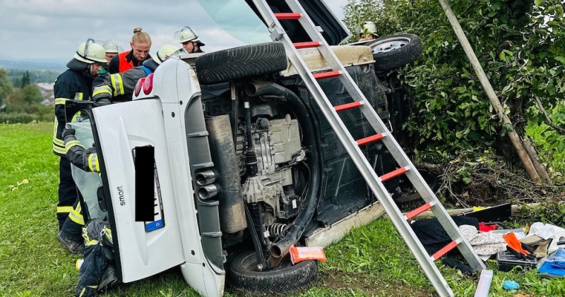 H3Y VU - Verkehrsunfall: PKW liegt auf Seite, Person eingeschlossen