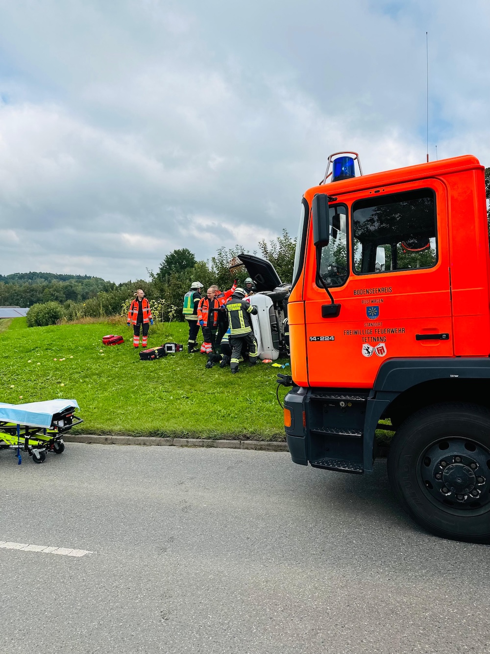 Die Freiwillige Feuerwehr Tettnang, Abt. Tettnang, wurde am Sonntagvormittag gegen 11 Uhr zu einem Verkehrsunfall bei auf der L 7723 bei Moos alarmiert.