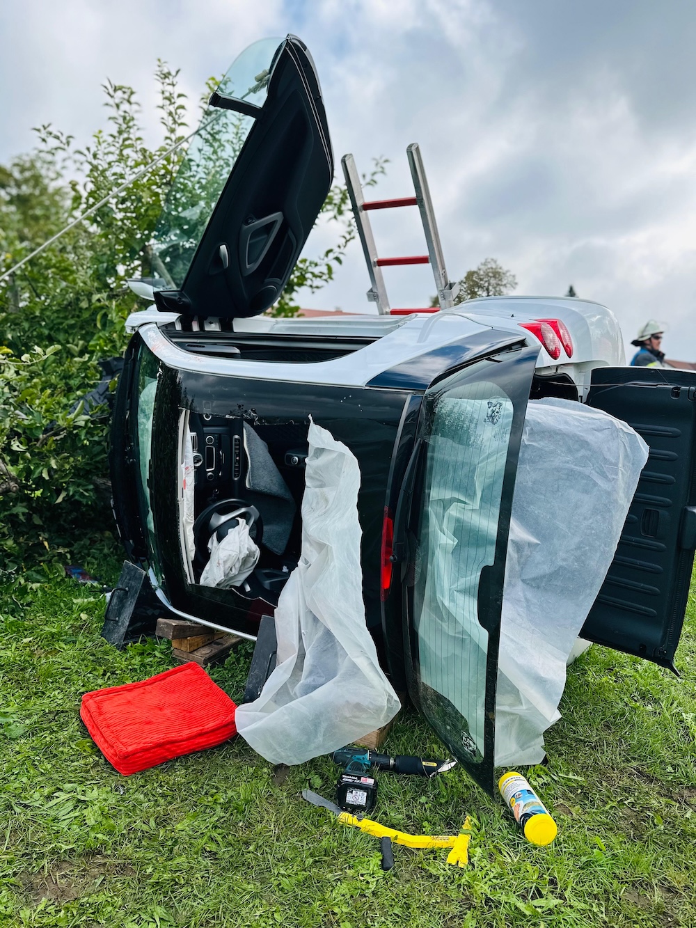 H3Y VU - Verkehrsunfall: PKW liegt auf Seite, Person eingeschlossen