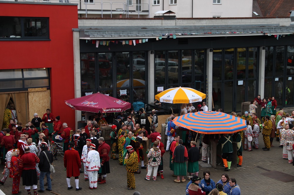 Auch am Fasnetsdienstag strömten wieder über 1.000 Besucher in die Wangener Straße: Zum Abschluss der Fasnet legte dort DJ Steven auf, während die Tettnanger Kameraden hinter dem Grill noch die hungrigen Gäste versorgten. Für einige der Lumpenkapellen war es nach dem Umzug in Tettnang wahrscheinlich der letzte Auftritt, den sie in der Fasnet 2016 machten.