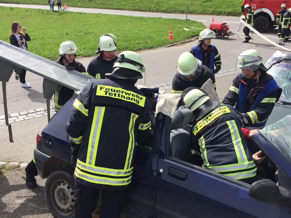 In dem Szenario stießen zwei PKW im Bereich der Ritter-Arnold-Schule zusammen: