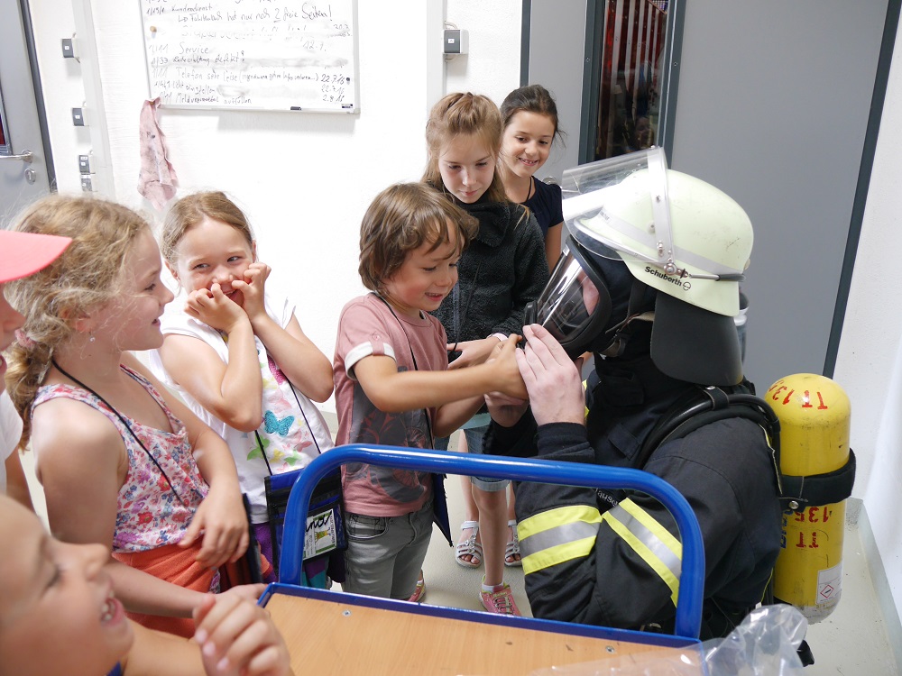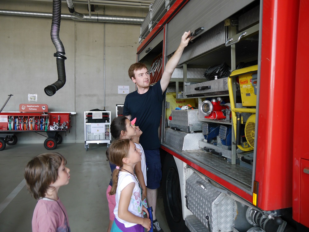 Gut besucht war das Tettnanger Feuerwehrhaus in den letzten Tagen nicht nur durch die vielen freiwilligen Feuerwehrkameraden, die zur Zeit beinahe täglich bei Einsätzen anderen Menschen zur Hilfe eilen (allein 35 Einsätze im letzten Monat). Auch die frisch gebackenen Bürger Hopfenaus ließen es sich am Mittwoch nicht nehmen, die ebenso für die Kinderspielstadt zuständige Feuerwehr Tettnang zu besichtigen. Am Freitag folgten dann die Teilnehmer des Langnauer Ferienprogramms, welche im dortigen Gerätehaus einen actionreichen Nachmittag verbrachten.