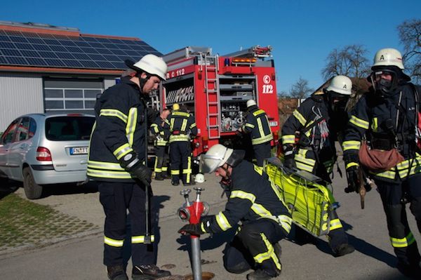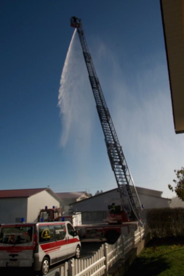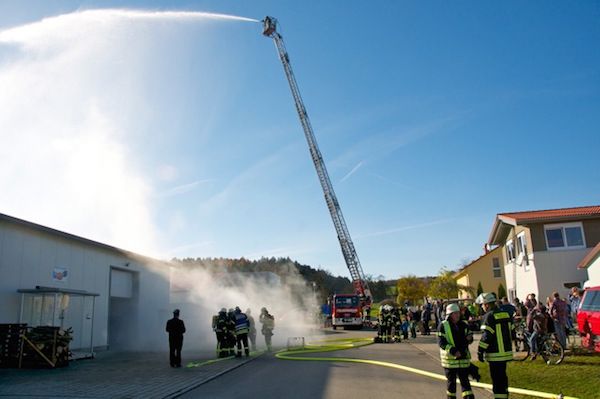 Die Abteilung Tannau der Feuerwehr Tettnang leistete am Samstag ihre Jahreshauptübung ab. Übungsobjekt war ein Industriegebäude einer Dienstleistungs-Firma. Übungsannahme war, dass in dieser Halle ein Feuer ausgebrochen war. Zusätzlich war bekannt, dass eine Person vermisst wurde. Alarmiert über Meldeempfänger und Sirene setzte sich so das LF 8-6, TSF, ELW, Drehleiter sowie das LF 20/16 mit Jugendfeuerwehrlern in die Straße "Im Leimen" in Bewegung.