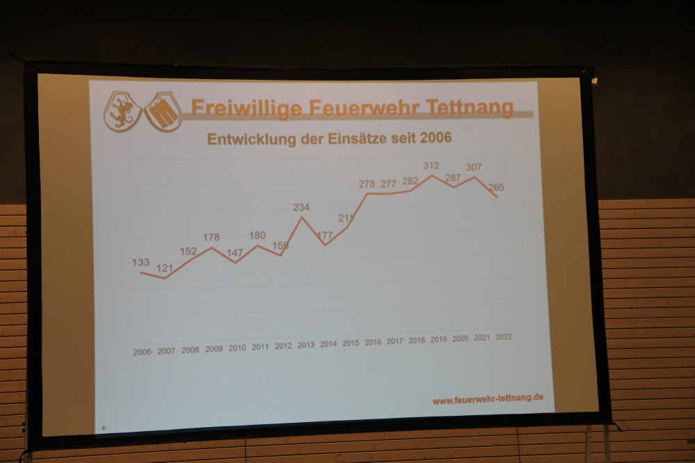 Im Jahr 2022 rückten die Abteilungen insgesamt zu „nur“ 265 Einsätzen aus, was verglichen mit den Vorjahren (2021: 307 beziehungsweise 2020: 287 Einsätze) mit unter durch die fehlenden Unwettereinsätze zu erklären war.