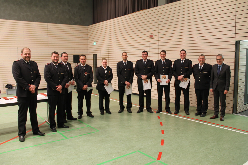 Andreas Braun wurde vom Löschmeister zu Oberlöschmeister, Björn Gold, Michael Hilebrand und Ottmar Huber vom Oberlöschmeister zum Hauptlöschmeister befördert. Felix Probst ist nun zum Brandmeister aufgestiegen.