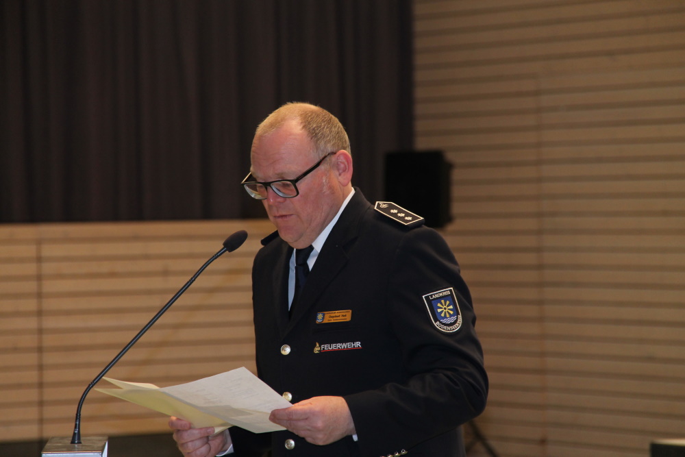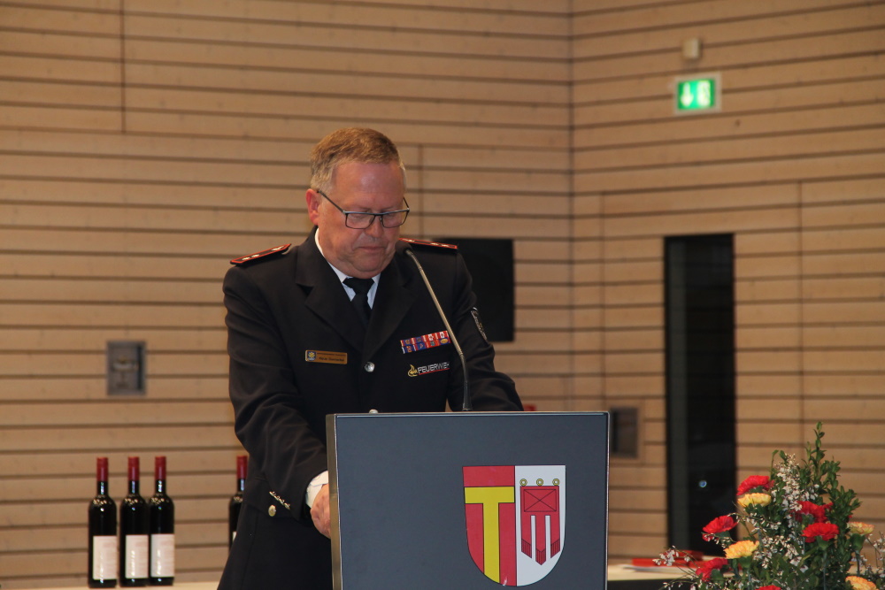 In seiner letzten Hauptversammlung als Bürgermeister blickte Walter auf die vergangenen 16 Jahre mit der Feuerwehr Tettnang auf viele Einsätze und Ereignisse zurück und schätzte das große Engagement aller Feuerwehrler zu jeder Tages- und Nachtzeit.