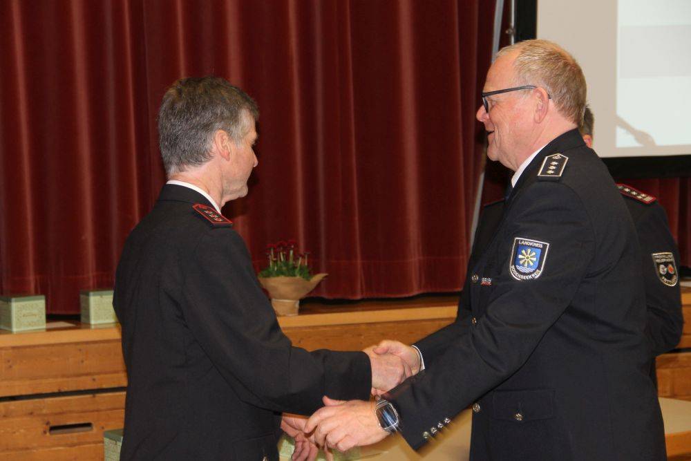 Im Anschluss richtete Matthias Seibert vom Kreisfeuerwehrverband Bodenseekreis einige Worte an die Versammlung und nahm weitere Ehrungen für besondere Verdienste um das Feuerwehrwesen vor.