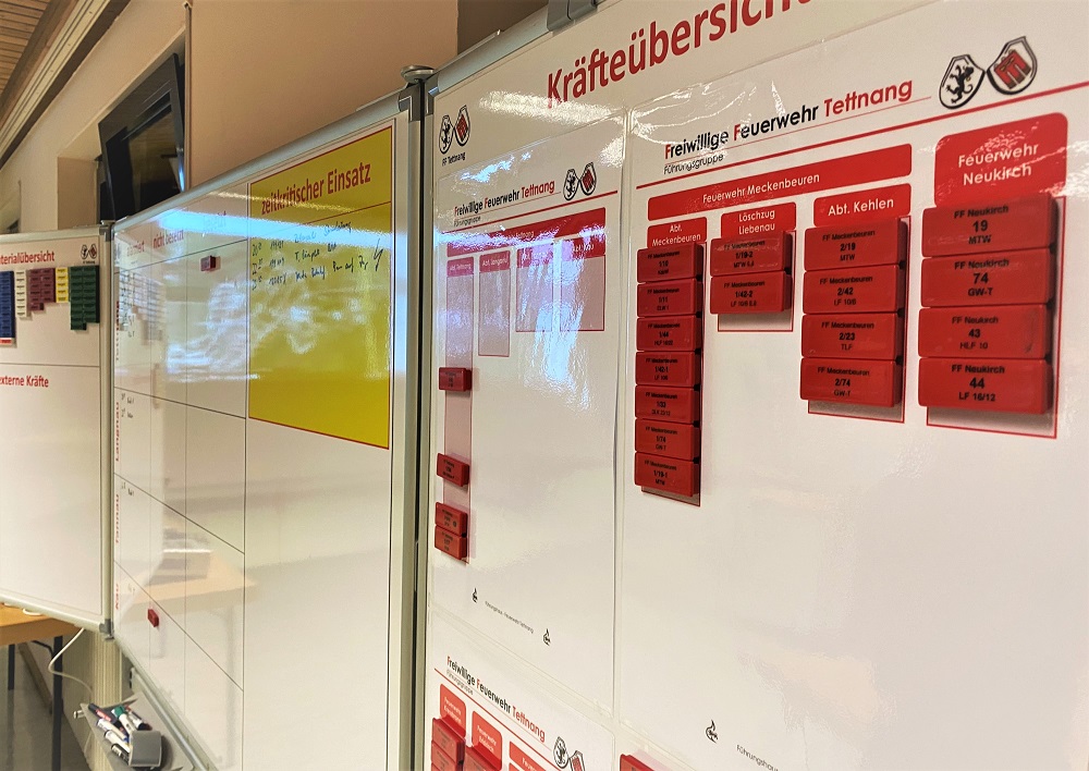 Alternativ zum Aufbau der Führungsgruppe an einer Einsatzstelle vor Ort gibt es die Möglichkeit, bei etwaigen Flächenereignissen, wie Hochwasser oder Stürme, in geeigneten Räumen aufzubauen. Hier sei als Beispiel die Feuerwache selbst genannt. Aufgrund der Vielzahl der eingehenden Einsätze werden diese durch den Einsatzleiter priorisiert und anschließend abgearbeitet. Dabei helfen große Tafeln, um den Überblick der eingesetzten Ressourcen zu bewahren. Mittels Beamer können die Einsatzstellen auf einer Karte visualisiert werden.