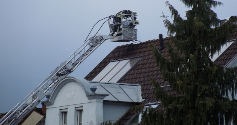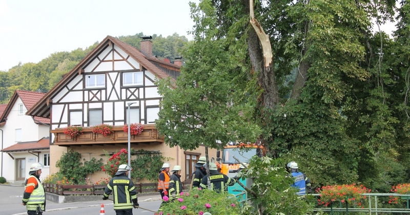 Auf ein Wohnhaus war ein Baum gestürzt. Die Äste wurden von der Feuerwehr beseitigt.