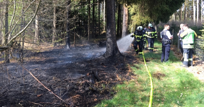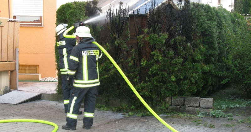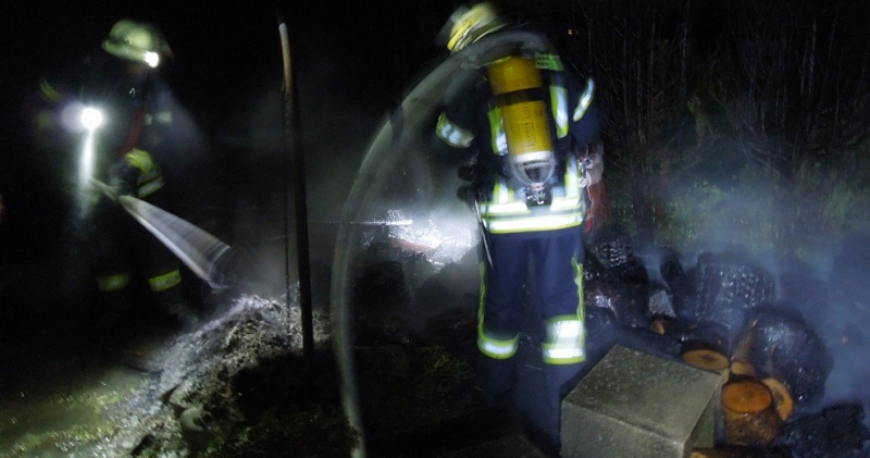 In Obereisenbach brannte ein Nadelbaum. Ein Anwohner hatte den brennenden Baum abgelöscht. Die Feuerwehr kontrollierte die Brandstelle anschließend mittels Wärmebildkamera.