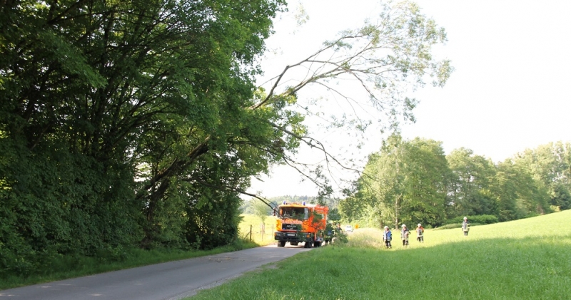 Der Feuerwehr Tettnang, Abteilung Langnau, wurde ein über der Straße liegender Baum gemeldet. Die Straße wurde gesichert, der Baum über die Leitplanke gedreht und die Straße gereinigt.