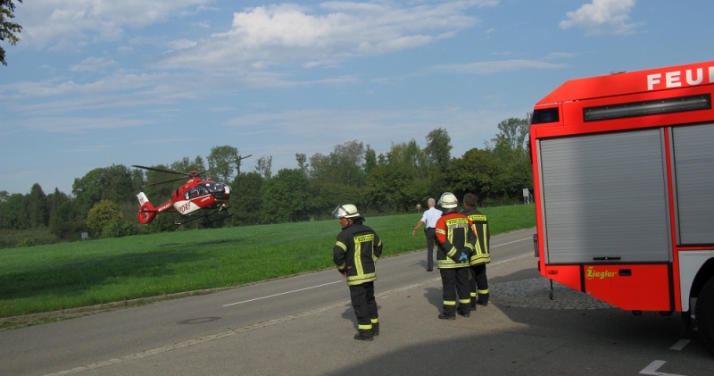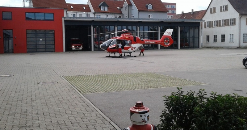 Auf dem Hof der Feuerwache Tettnang landete der Rettungshubschrauber: Die ILS Bodensee alarmierte die Feuerwehr als Notarztzubringer. Bei der Landung stellte sich heraus, dass der medizinische Notfall in umittelbarer Nähe der Wache lag, sodass ein Transport nicht notwendig war.