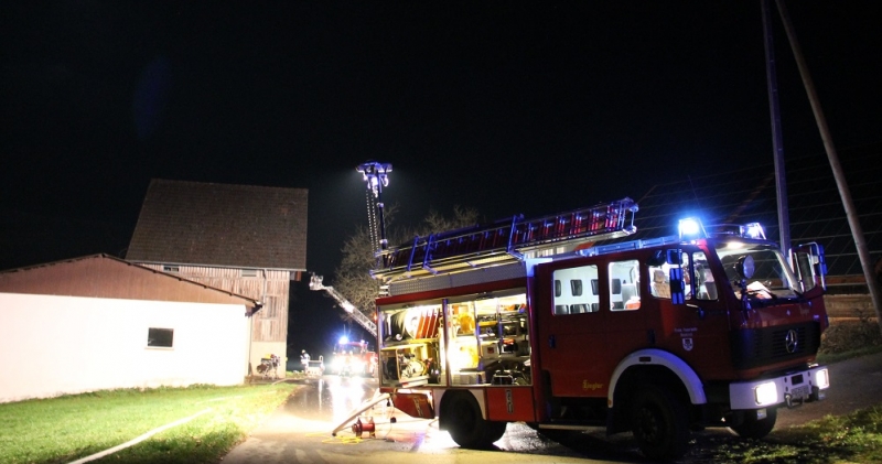 Die Feuerwehr Tettnang rückte mit der Drehleiter nach Liebenau zu einem Küchenbrand aus.