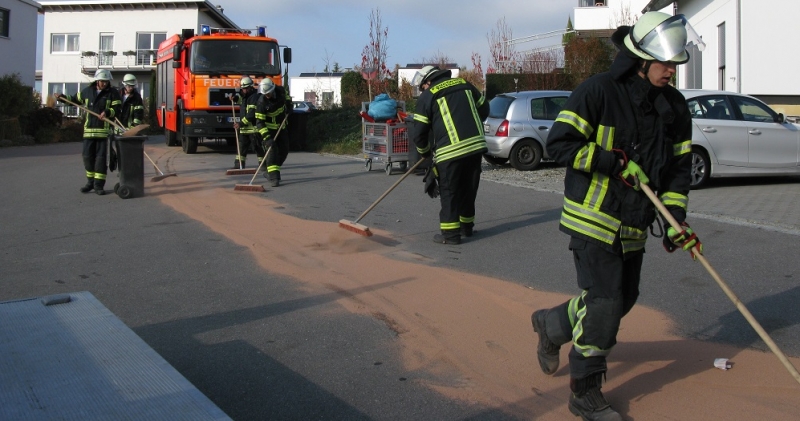 Bei einem LKW wurde beim Abladen eine Ölleitung beschädigt. Das Öl wurde durch die Feuerwehr aufgenommen.