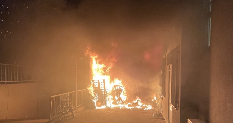 F2 - Brand an einem Anlieferbereich von einem Wohn- und Geschäftsgebäude