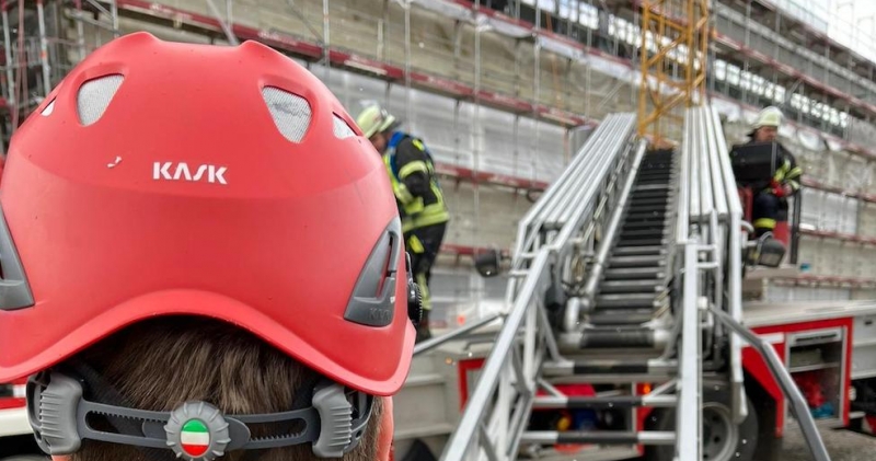 H ABSTURZ - Menschenrettung mittels Drehleiter von Baugerüst
