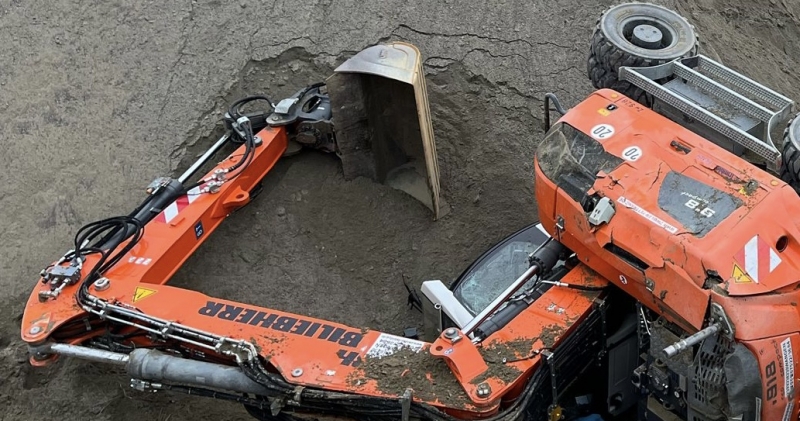 H2 VU - Bagger stürzt Hang hinab, unklare Lage