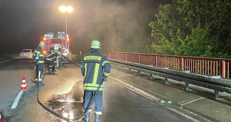 Die Feuerwehr beseitigte eine Ölspur nach einem Auffahrunfall.