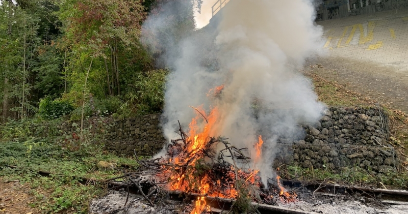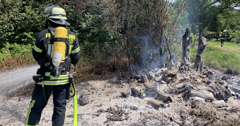 Über die 112 meldete ein Bürger eine unklare Rauchentwicklung, die im Gebiet Oberhof aufsteigt. Die Einsatzkräfte stellten vor Ort fest, dass es sich um die Verbrennung von Hopfenranken handelte.