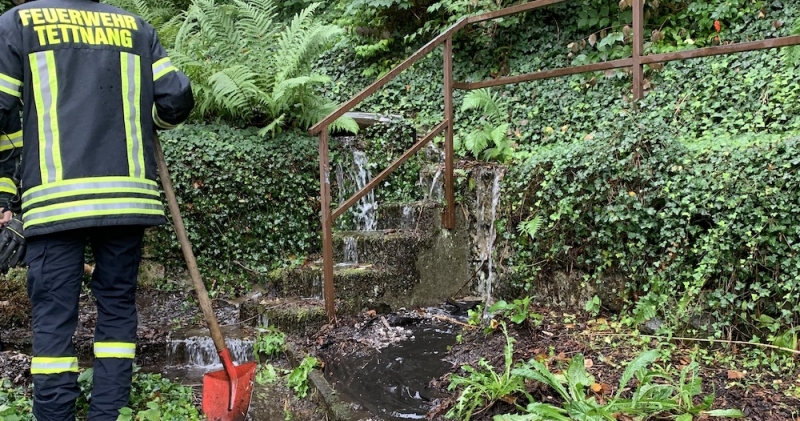 Durch ein verstopftes Schmutzfanggitter an einem Bachlauf und dem daraus entstehenden Rückstau im Kanal konnte der Regen aus den Dachrinnen zweier Häuser im Ortsteil Walchesreute nicht mehr ablaufen und füllte die Lichtschächte der Häuser.