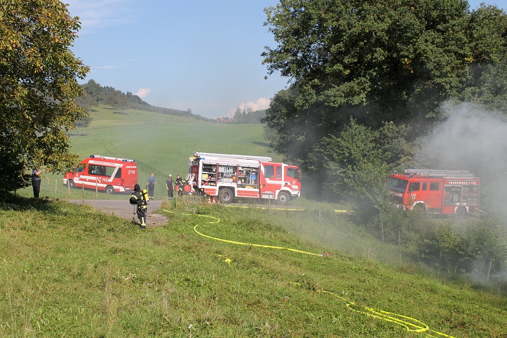 Am Sonntagnachmittag des 7. Septembers brannte in Tettnang-Wellmutsweiler ein Lagerschuppen für Stroh und Bewässerungsgeräte in voller Ausdehnung.
