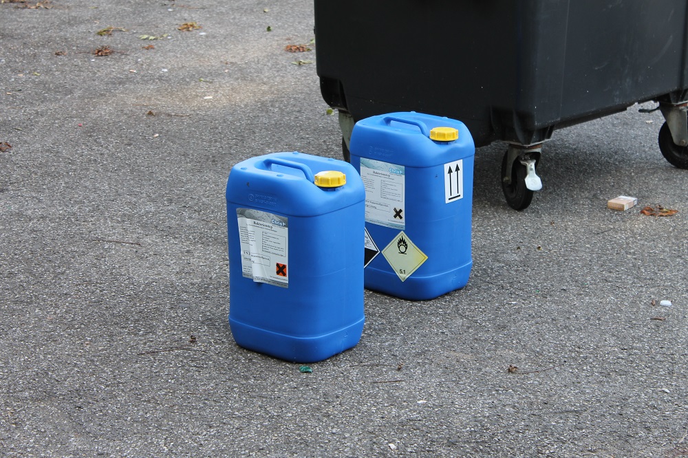 Laut Aufdruck auf den beiden 25-Litern-Kanistern sollte es sich hierbei um Wasserstoffperoxid handeln. Daraufhin wurde die Feuerwehr Tettnang unter dem Einsatzstichwort "H GSG 1" alarmiert.