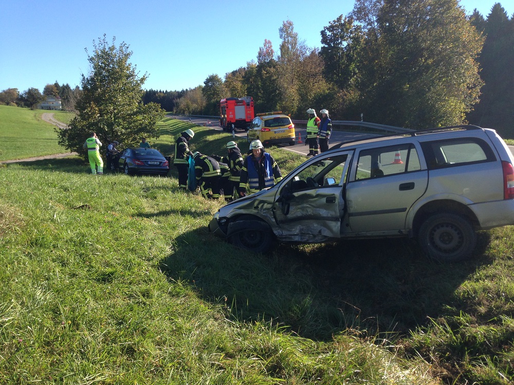 Ein Verkehrsunfall mit zwei beteiligten PKW machte die Arbeit der Feuerwehr Tettnang auf der Strecke von Tannau in Richtung Baldensweiler notwendig.