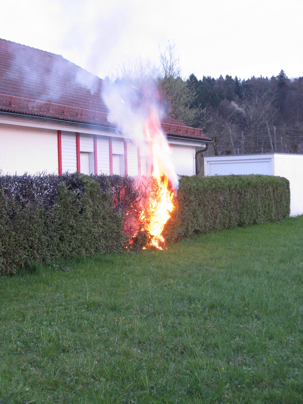 Den Brand einer Hecke auf einer Länge von mehreren Metern löschte die Feuerwehr am Abend des 2. April.