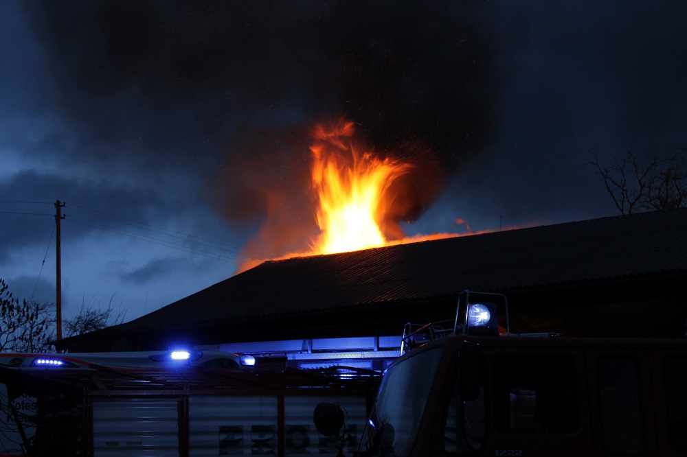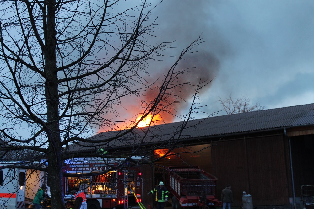 Bei der Ankunft der Feuerwehr hatte der Brand bereits auf eine danebenstehende Maschinen- und Lagerhalle übergegriffen, in welcher auch Heu gelagert war. Das Heu wurde aus der Halle entfernt.