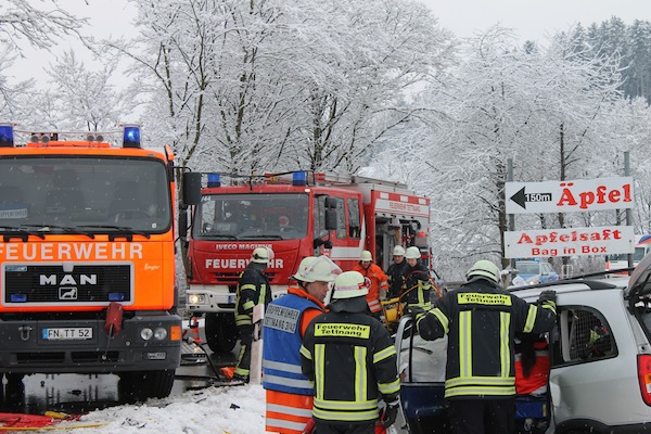 Zum vierten Verkehrsunfall in Folge wurde die Feuerwehr Tettnang inkl. Abteilung Tannau gerufen.