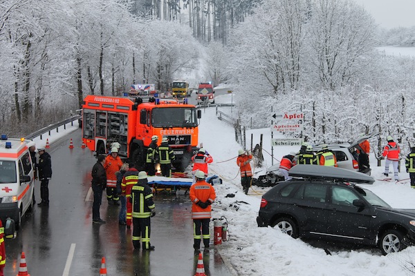 Auf der L 333 geriet eine Frau mit ihrem X5 ins Schleudern. Daraufhin geriet sie auf die Gegenfahrbahn, wo der BMW mit dem Opel Zafira eines 50-Jährigen Autofahrers zusammenstieß.