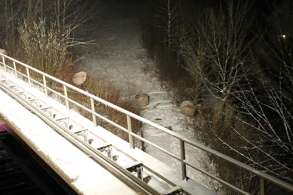Ein anderer Teil der Ladung landete in der Böschung. Da an dieser Stelle die Langenargener Straße die B 467 unter der Brücke kreuzt, rollten einige Papierrollen die Böschung hinunter und auch über die Langenargener Straße.