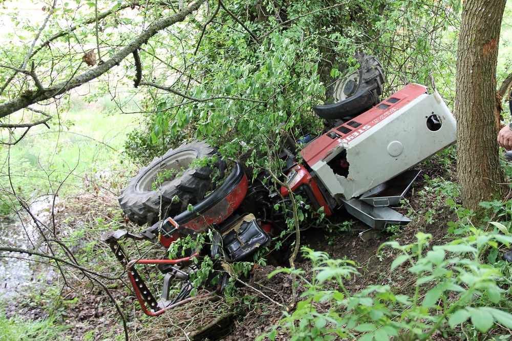 Der Mann war mit seinem Traktor an einem Hang unterwegs. Dabei stürzte die Zugmaschine samt Fahrer einen 15 Meter tiefen Abhang hinunter.