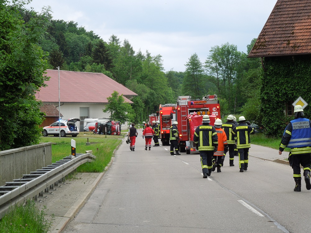 Wie es der Zufall manchmal so möchte, befanden sich zwei Kameraden der Freiwiligen Feuerwehr Tettnang gerade privat in direkter Nähe des Unfallortes, sodass sie gleich nach dem Unfall erste Hilfe leisten konnten, bis ihre Kameraden des Rettungsdienstes und der Feuerwehr anrückten.