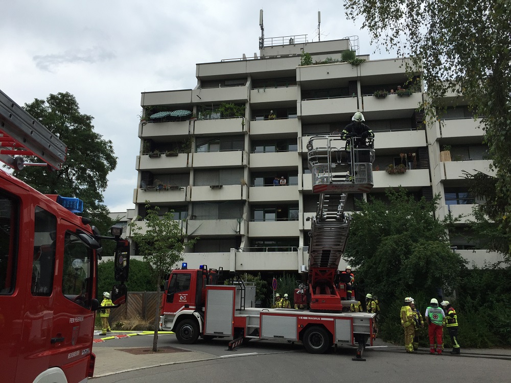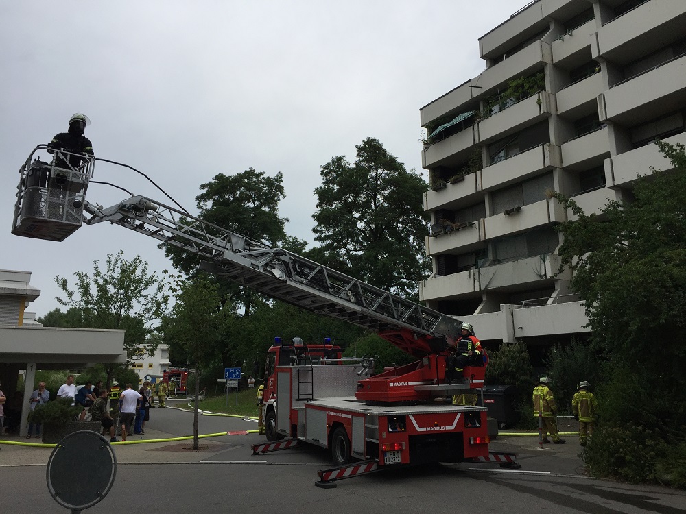 Die Drehleiter ist zu einem F2 nach Hegenberg angefordert worden. Durch einen Grill war das Treppenhaus eines Wohnheimes verraucht.