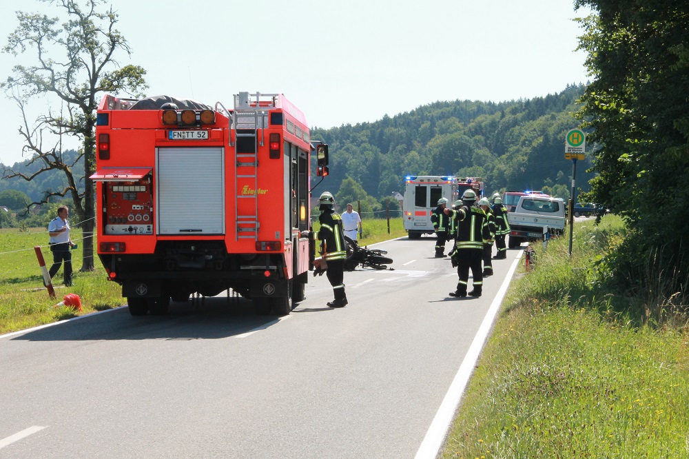 Auf der Straße zwischen Laimnau und Unterlangnau kam es am Vormittag des 21. Juli zu einem schweren Verkehrsunfall, bei welchem ein Motorradfahrer noch an der Unfallstelle starb.