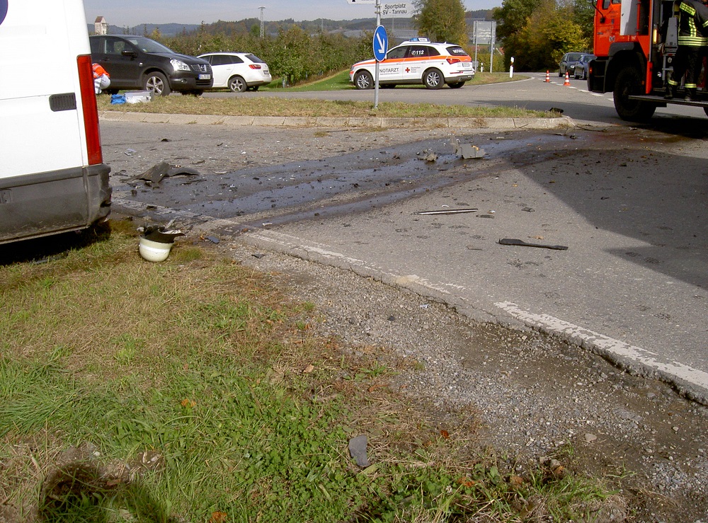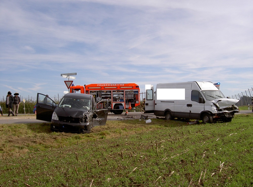 Nach einer Kollision zwischen PKW und Transporter unterstützte die Feuerwehr den Rettungsdienst bei der Rettung der Verletzten.