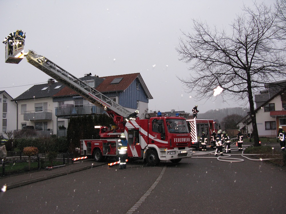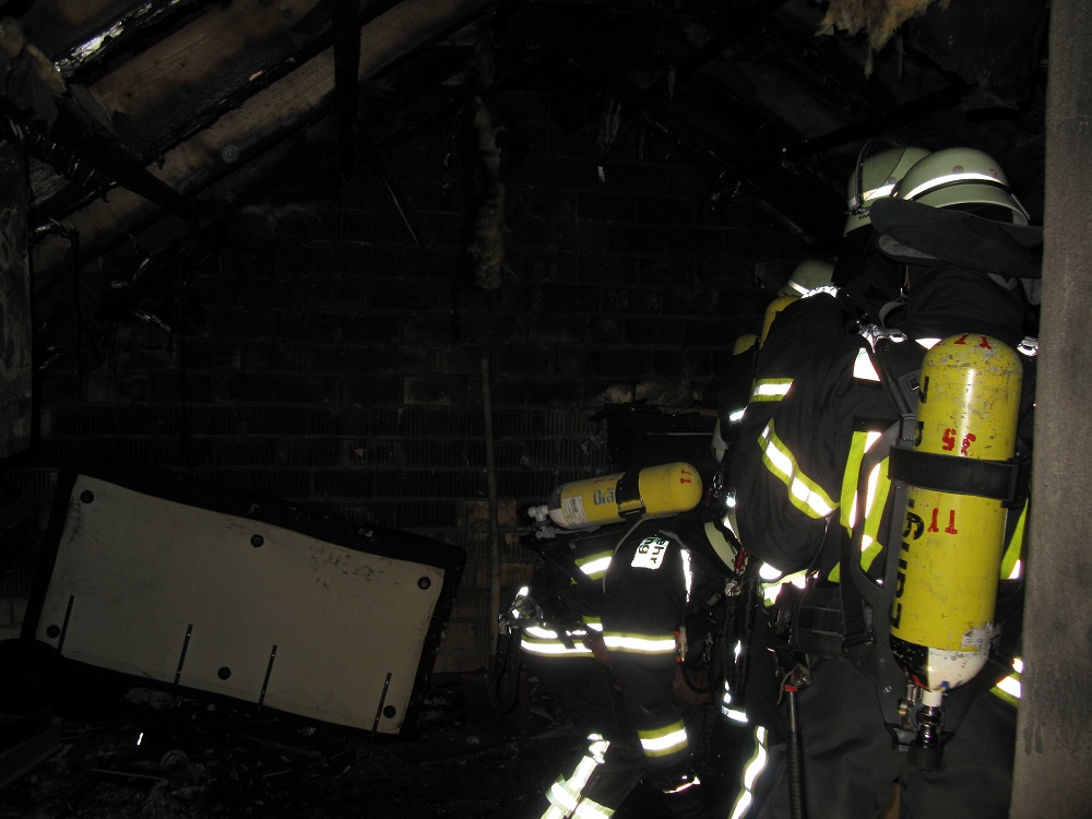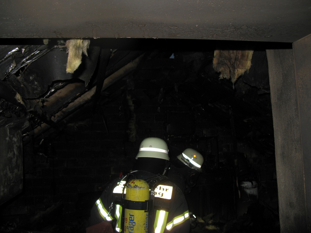 Im Banaterweg in Bürgermoos wurde ein "F2 fraglich nach Zimmerbrand" gemeldet. Bei der Erkundung wurde festgestellt, dass es eine Durchzündung gegeben hatte. Im Dachstuhl war somit ein fortentwickelter Brand feststellbar. Mit mehreren Trupps im Innenangriff und mit (unter anderem) drei C-Rohren wurde die Brandbekämpfung durchgeführt. 50 Mann der Feuerwehr (hiervon war die Feuerwehr Kressbronn mit zwei Fahrzeugen und 9 Mann vor Ort) sowie 14 Personen der SEG Tettnang waren an der Einsatzstelle.