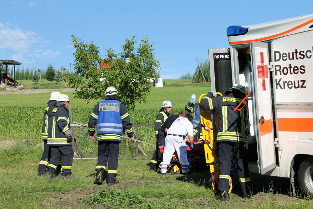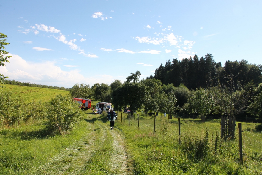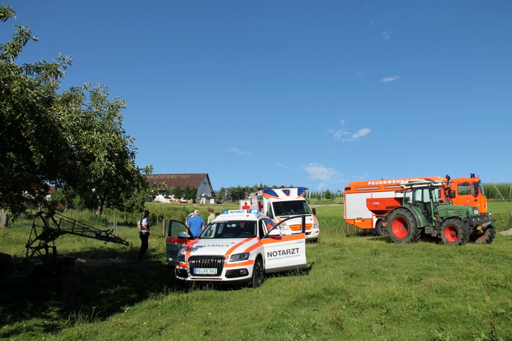 Die Abteilungen Tannau und Tettnang der Feuerwehr Tettnang wurden am 5. Juli zu einem Verkehrsunfall alarmiert. Den ersten Informationen zufolge sollte es sich um eine eingeklemmte Person bei einem Traktorunfall handeln.