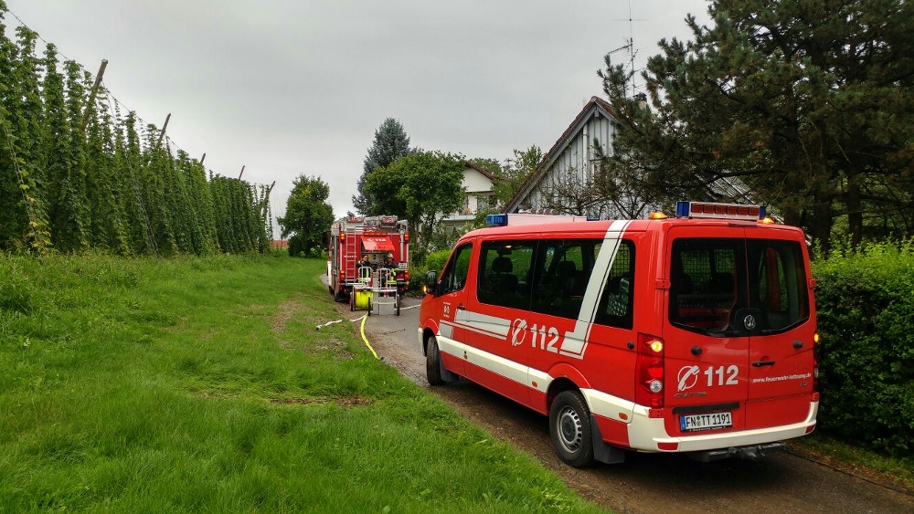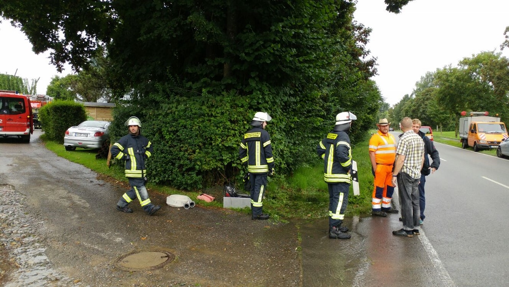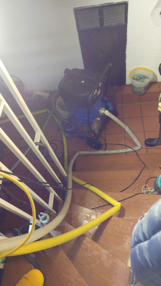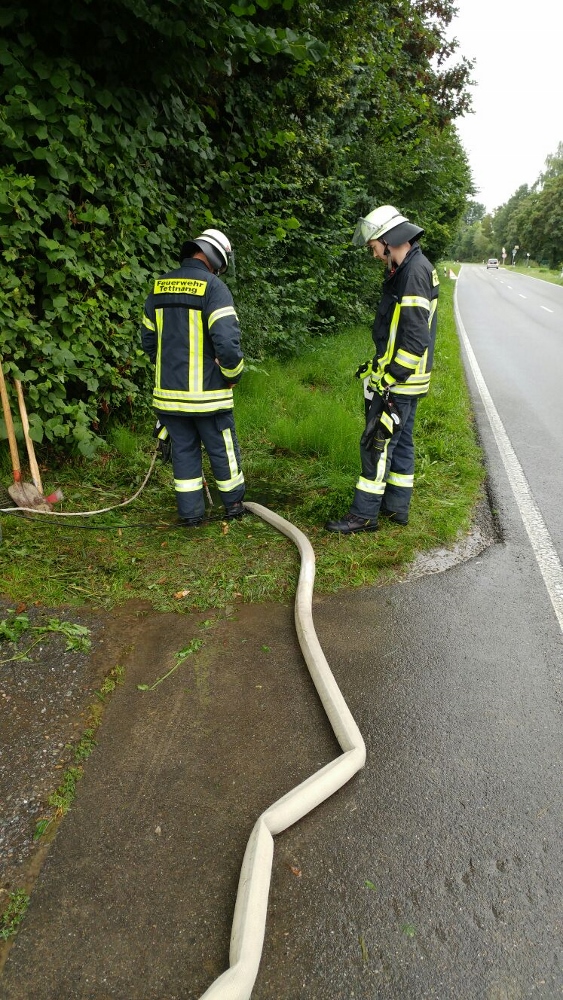 Vermutlich durch einen Straßenentwässerungsschacht gelangte Wasser in den Keller eines Wohnhauses. Das Wasser (Pegel etwa sechs Zentimeter) wurde mit zwei Wassersaugern aus dem Keller gepumpt.
