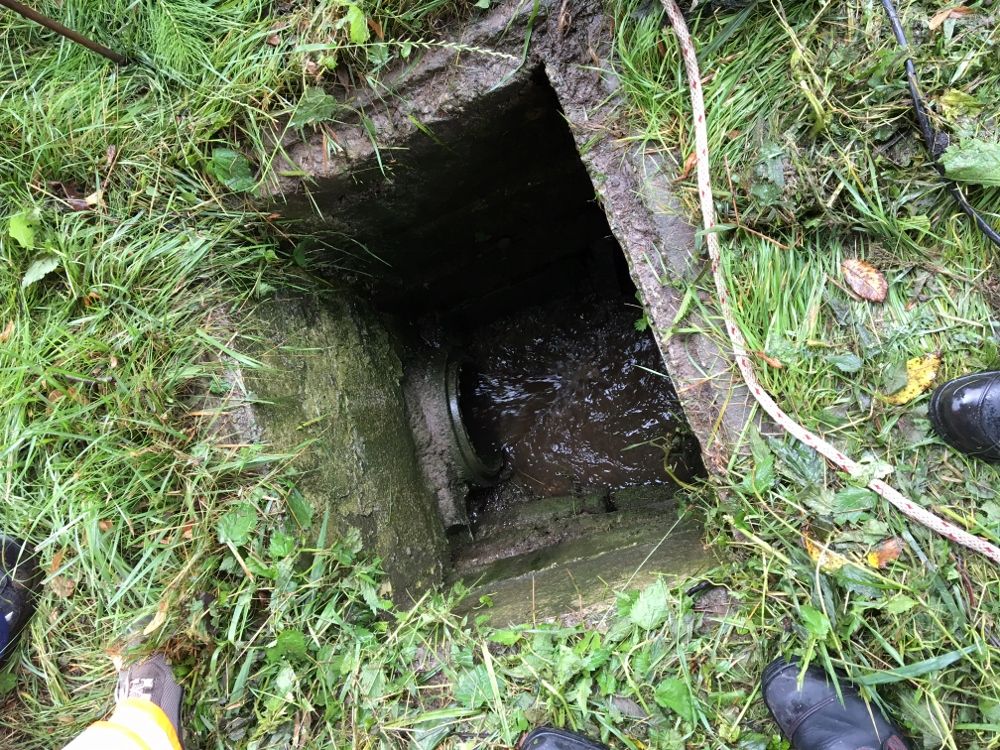 Der Bauhof und die Straßenmeisterei machten den Schacht wieder frei. Die Schachtentwässerung wurde mit einer Tauchpumpe unterstützt.