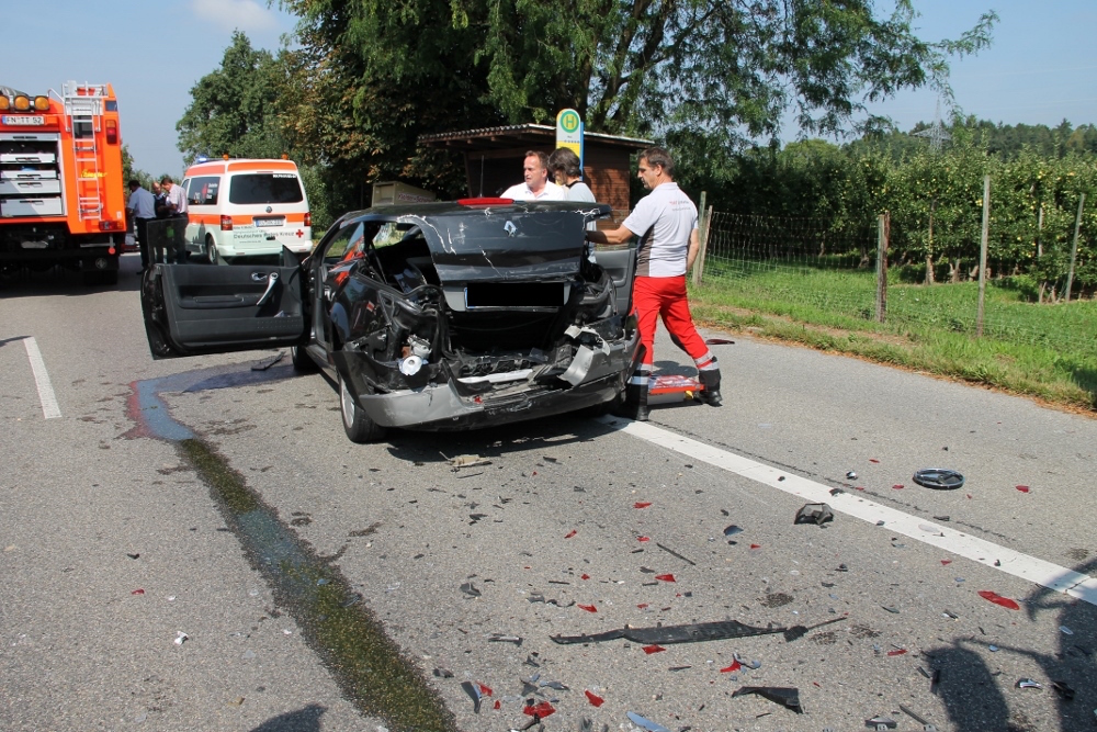 Ein gemeldeter "H2 Verkehrsunfall" auf der L 333 Höhe Feuerwache des Löschzug Kau ging am Mittag bei der Feuerwehr Tetnang ein. Die Erkundung der verunfallten Fahrzeug ergab, dass keine Personen mehr in den Fahrzeugen eingeklemmt war. Somit unterstützte die Feuerwehr den Rettungsdienst bei zwei verletzten Personen.