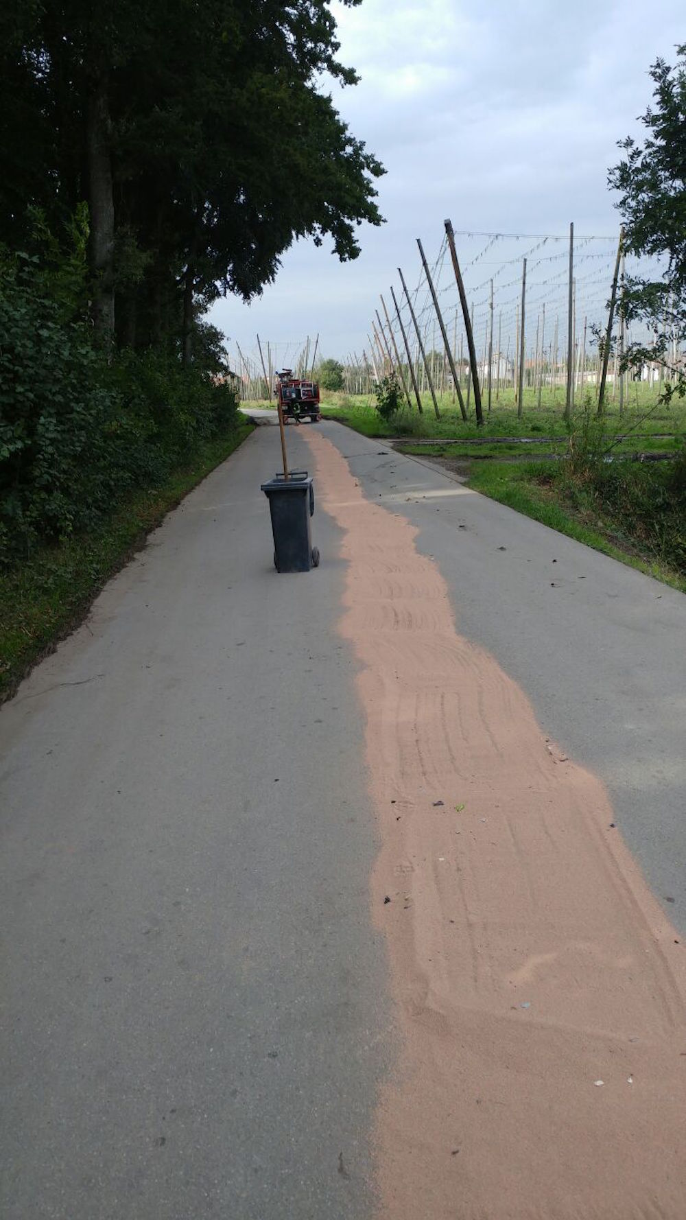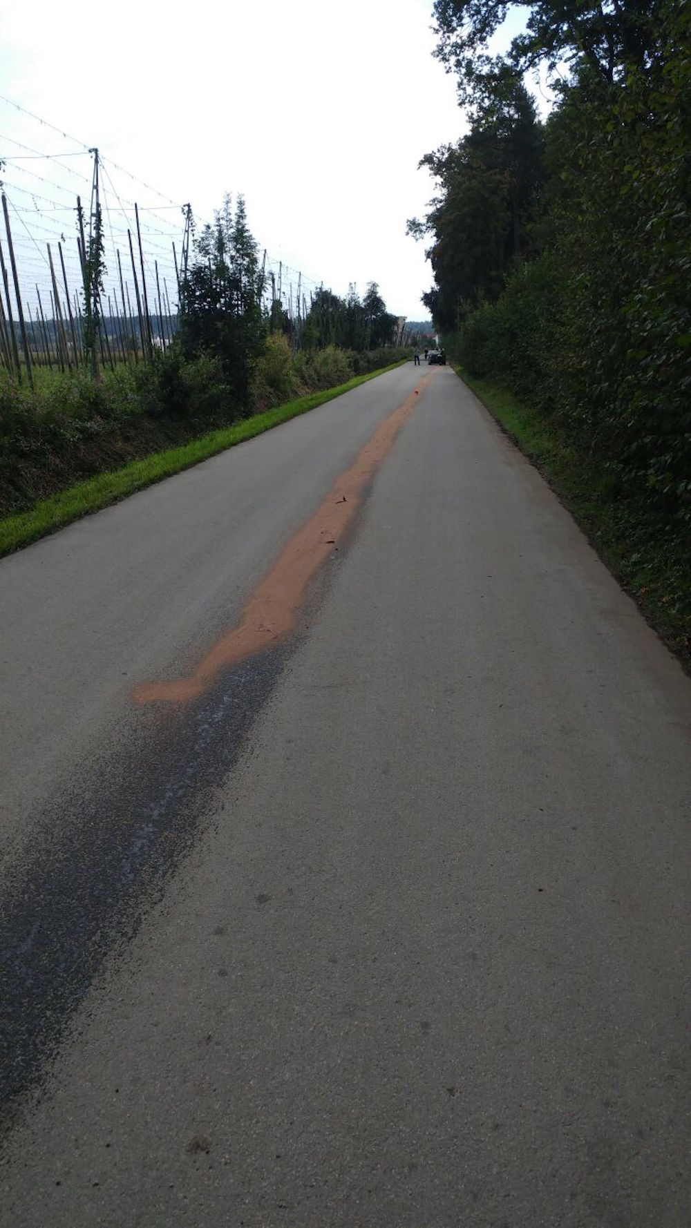 Ein PKW-Fahrer hatte sich auf der Straße die Ölwanne seines PKW aufgerissen, wodurch das Öl auf die Straße gelangte. Die Besatzung des GW-T nahm das Öl auf und stellte Warnschilder auf.
