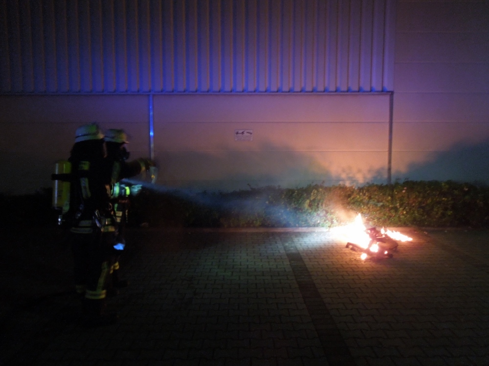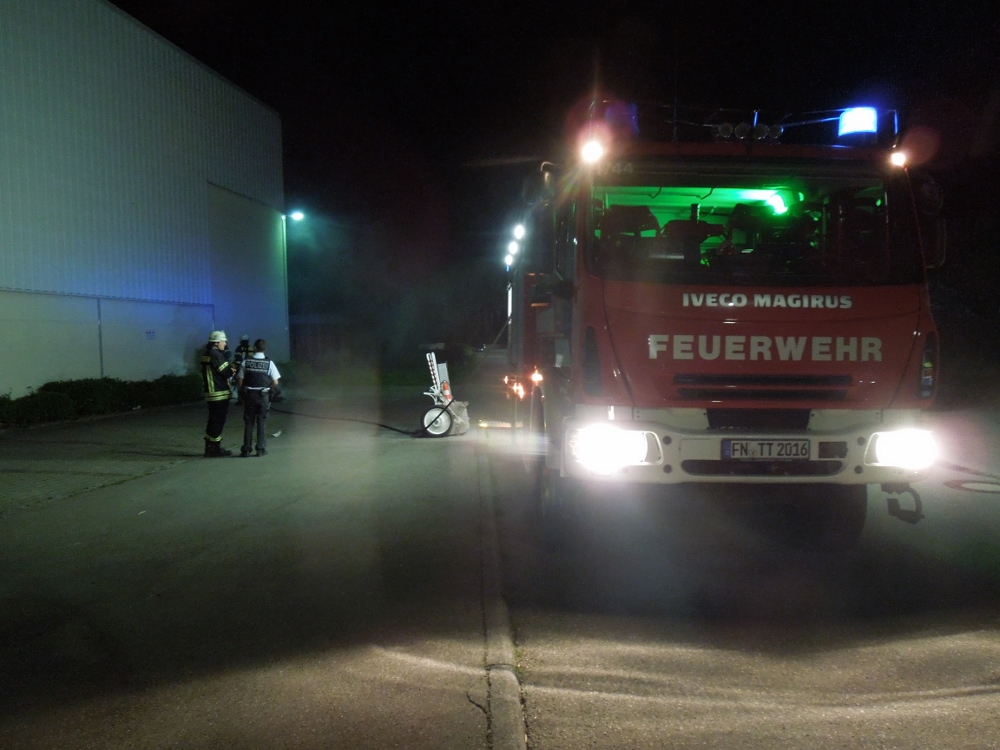 In einem Gewerbegebiet in Tettnang-Bürgermoos wurde ein Kleinbrand gemeldet. Auf einem Parkplatz brannte ein Bürodrehstuhl. Mit dem Schnellangriff des 1/44-1 wurde das Feuer rasch gelöscht. DIe Brandstelle wurde im Anschluss mit der Wärmebildkamera geprüft.