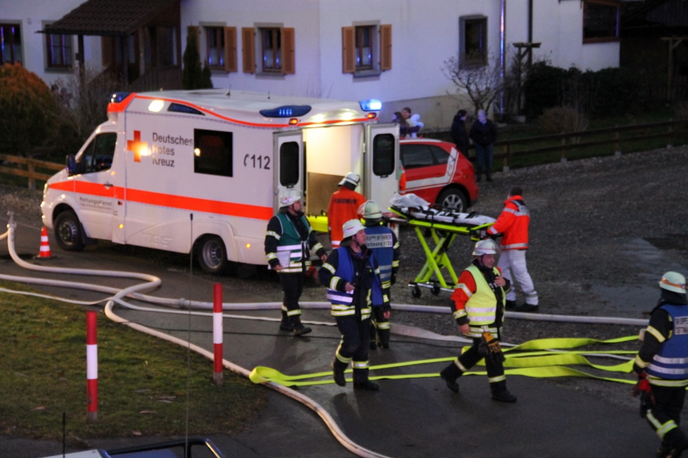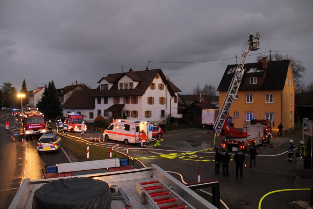 Zwei Personen wurden bei einem Mittelbrand in Tettnang-Walchesreute von der Feuerwehr aus dem Wohnhaus gebracht: