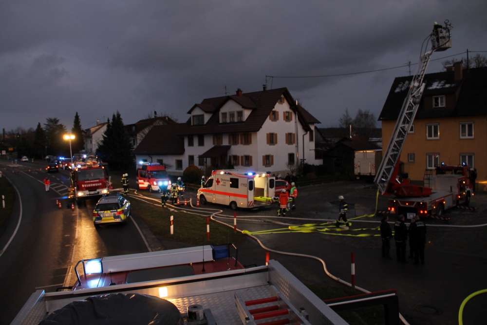 Die Feuerwehr Tettnang war mit mit zwei Löschzügen mit 34 Mann an der Einsatzstelle.