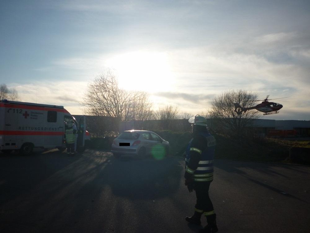 Passanten hatten die Feuerwehr gerufen, da diese zwei nicht ansprechbare Personen in einem abgestelltem PKW bemerkt hatten. Da bei dem Wagen der Motor lief und eine Seitenscheibe abgeklebt war konnte ein Suizidversuch nicht ausgeschlossen werden.