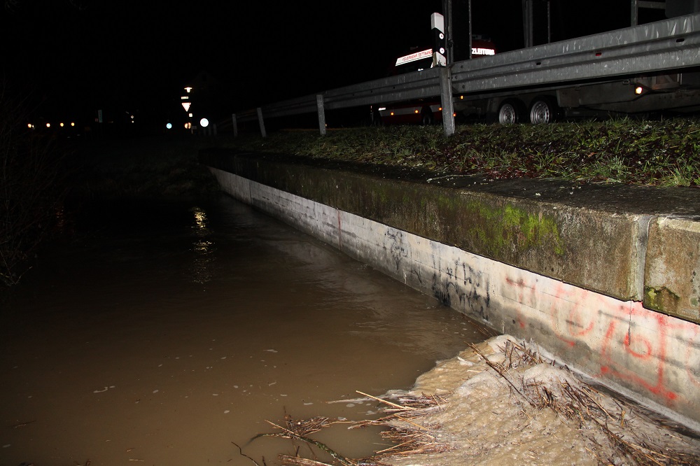 Wegen der großen Wassermengen (Regenfälle und Tauwetter) wurde an markanten Punkten der Wasserpegel kontrolliert.