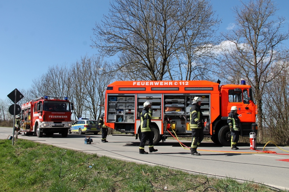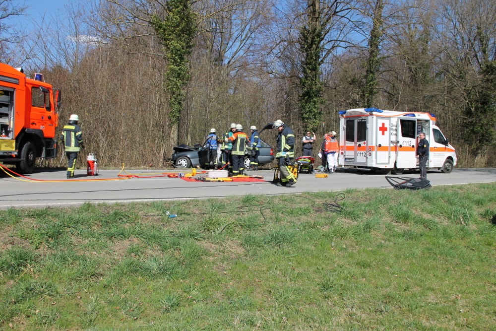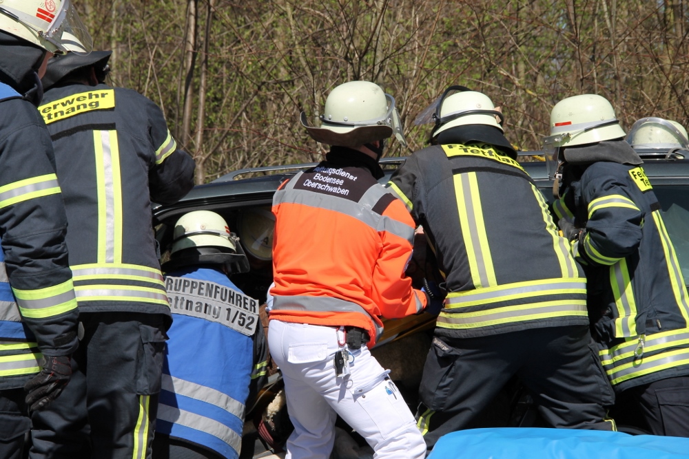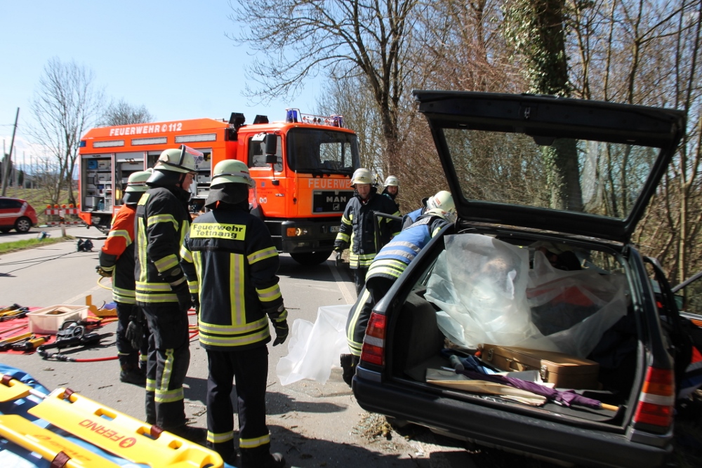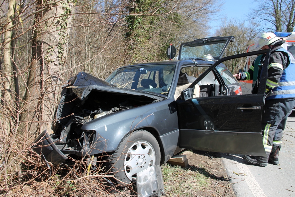 Auf der Kreisstraße 7790 kam laut Polizeiangaben ein 89-Jähriger Mann mit seinem PKW von der Fahrbahn ab und prallte frontal gegen einen Baum. Die daraufhin alarmierte Feuerwehr Tettnang rückte mit vier Fahrzeugen an die Einsatzstelle an.