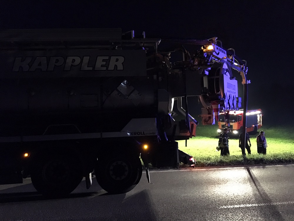 Somit wurde zum einen der Dieseleintritt in den Kanal gestoppt und Dämme gesetzt. Zum anderen wurden nach Rücksprache mit dem Landratsamt die Kanäle mit Wasser gespült und das angestaute Wasser-Diesel-Gemisch von einer Fachfirma abgepumpt.